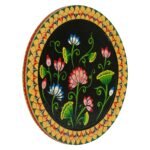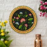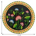 This hand-painted pichwai features a stunning floral design on a black background. The intricate details and vibrant colors make this piece a true work of art. Perfect for adding a touch of Indian culture to your home or as a unique gift.